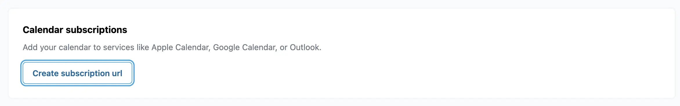 Vai alla pagina delle Impostazioni (Settings) e scorri fino in fondo per trovare la sezione Abbonamenti al calendario (Calendar subscriptions). Fai clic su Create subscription (Crea abbonamento).