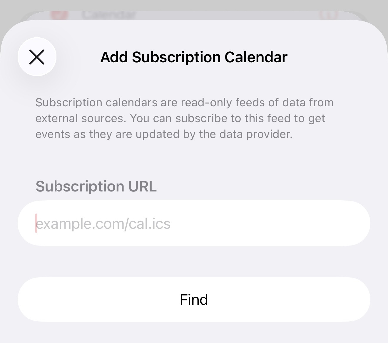 Seleziona Aggiungi calendario su abbonamento.