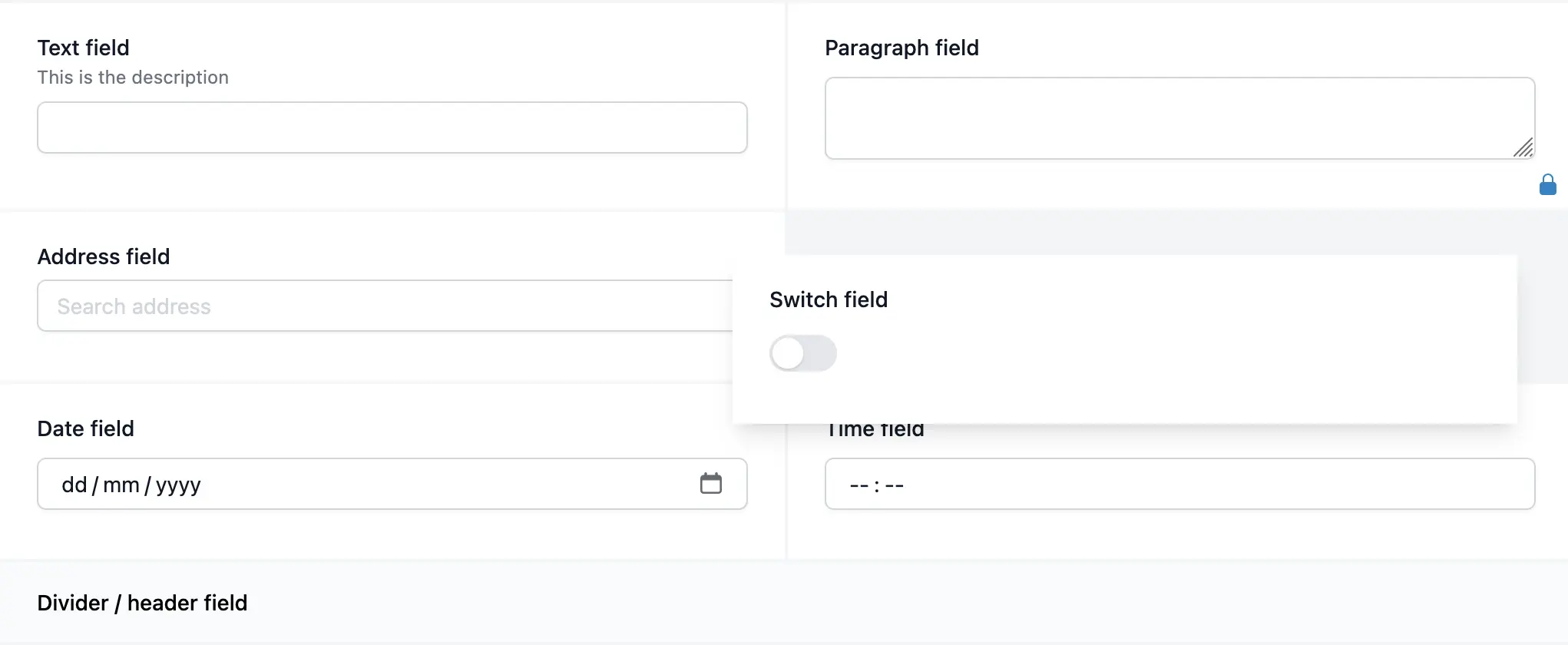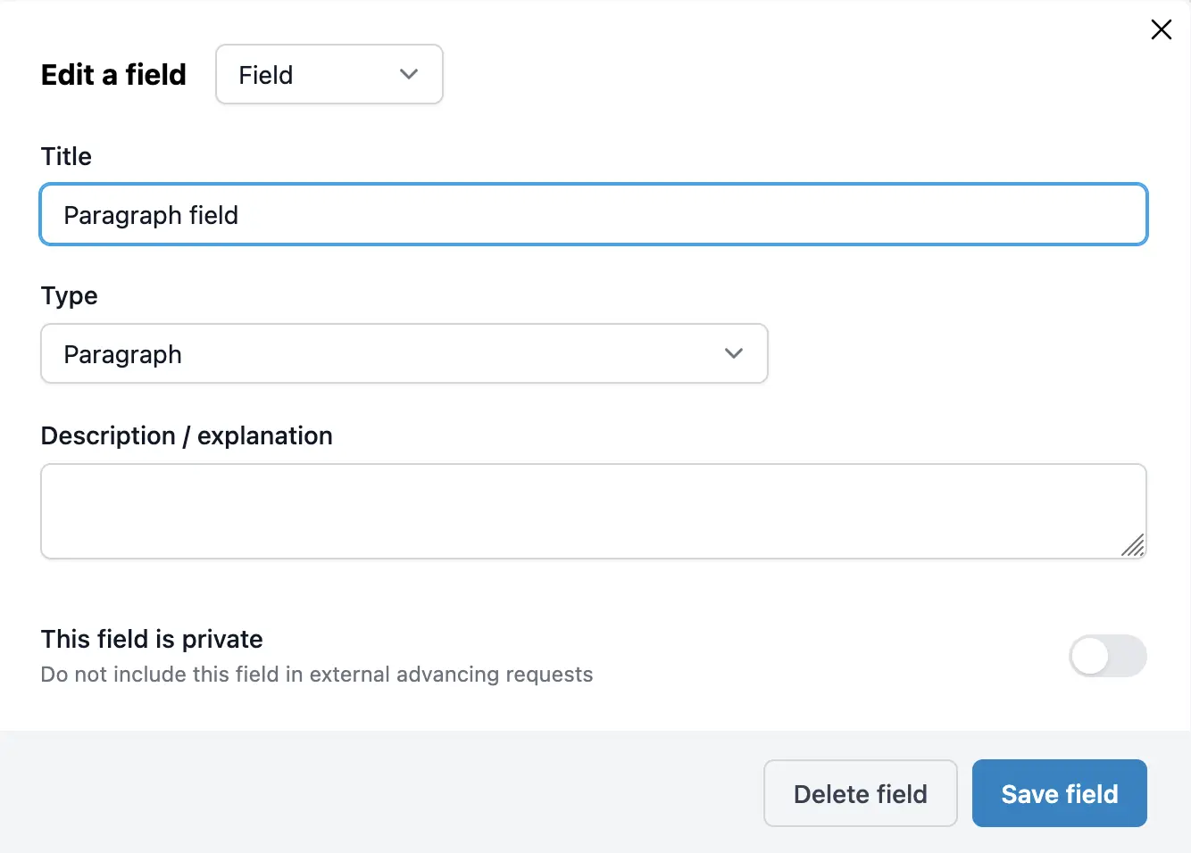 Il cuore del sistema di advancing è la sua flessibilità. Puoi costruire il tuo modulo di advancing utilizzando un'ampia varietà di tipi di campi per acquisire esattamente le informazioni di cui hai bisogno.
