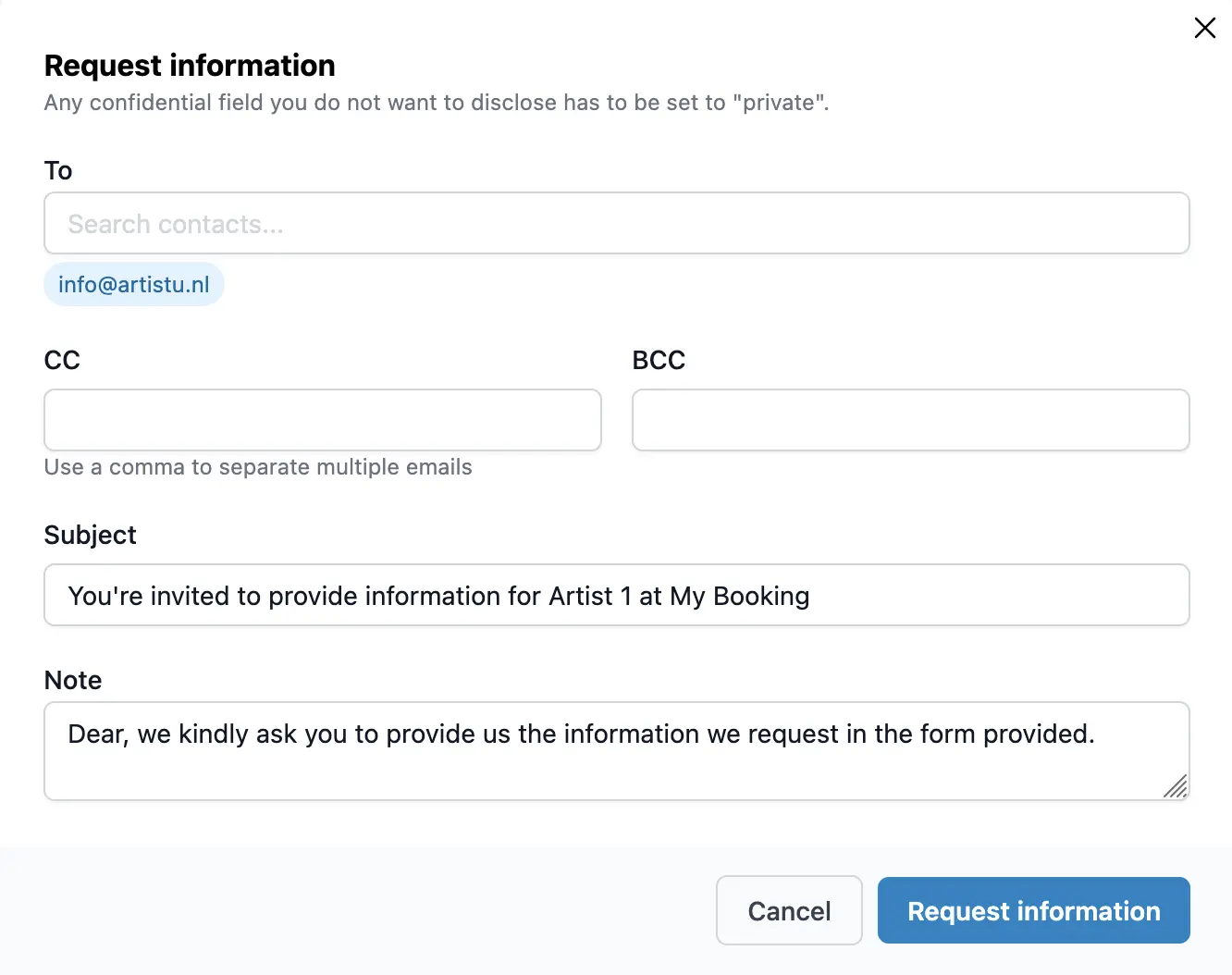 Artistu semplifica il processo di raccolta delle informazioni dai promoter grazie a richieste email integrate e a un sistema di monitoraggio unificato.