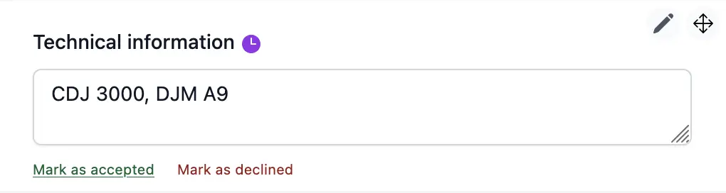 Dopo che il cliente ha inviato le informazioni, i campi nella dashboard dell'amministratore appariranno come Pending (In sospeso). Questo ti dà il pieno controllo per rivedere i dati prima che diventino ufficiali.