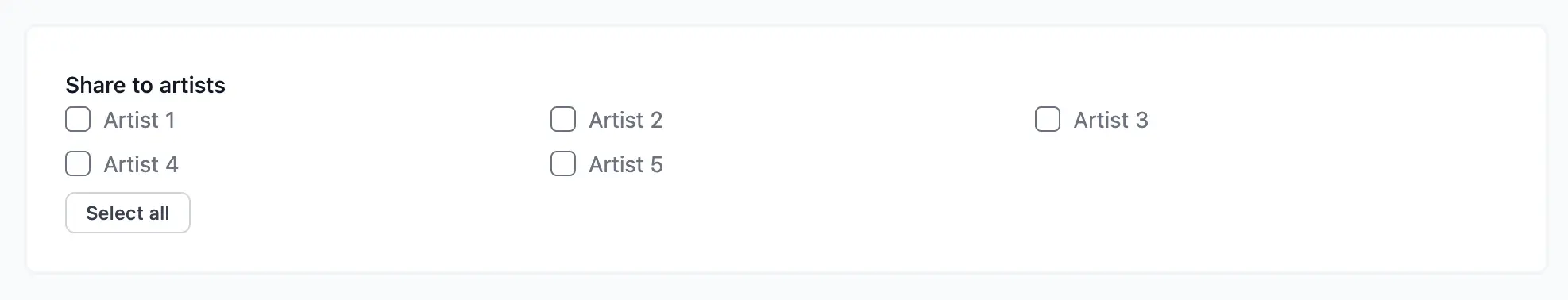 Durante la creazione o la modifica di un modello condiviso, puoi selezionare a quali artisti deve essere applicato questo modello. Ciò ti consente di mantenere un'unica fonte per il modello rendendola disponibile per più artisti nel tuo roster.