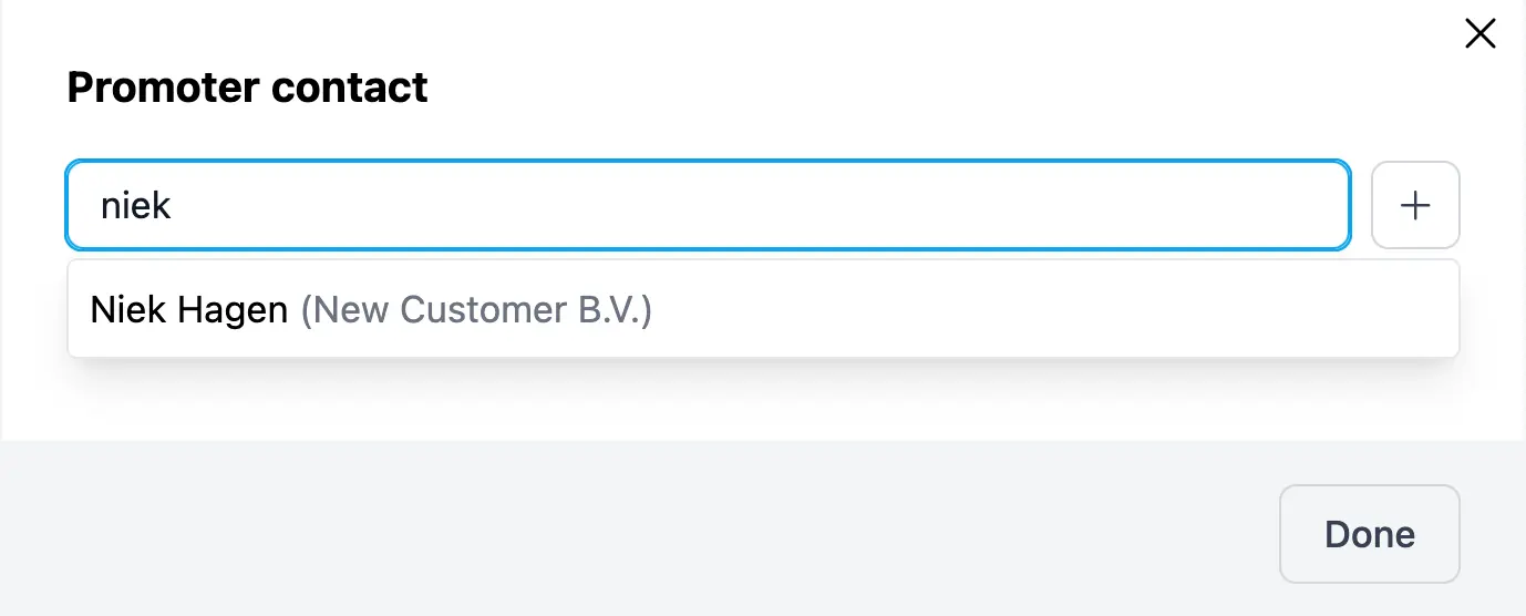 Nella pagina dei dettagli della prenotazione, cerca sulla destra la sezione "promoter" (promotore) o "advancer". Clicca sul contatto che desideri collegare e apparirà un popup.
